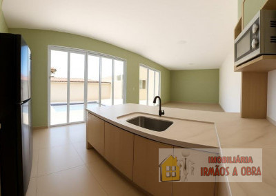 Casa Térrea Moderna: Design com pé direito alto (3m), proporcionando amplitude e excelente iluminação natural.
